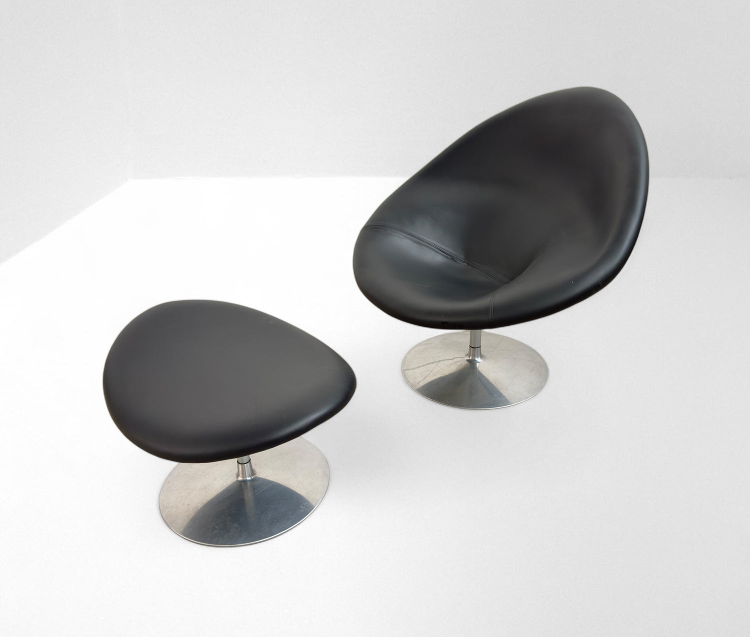 Pierre Paulin, Black Big Globe Lounge Chair with Ottoman